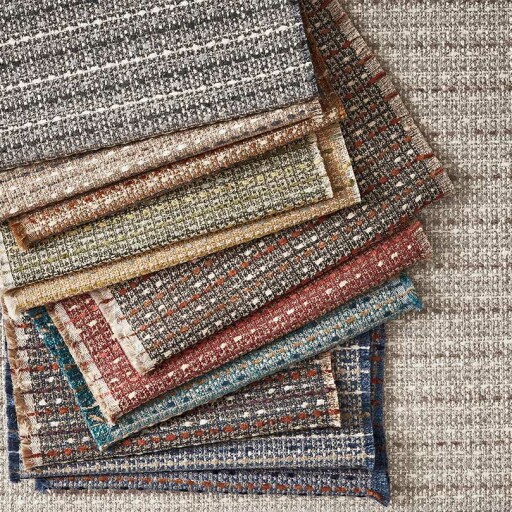 Tkanina s horizontálními žinylkovými proužky připomínající stehy.