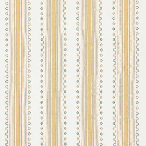 Vícebarevné pruhy z bavlny a lnu jsou lemovány ozdobnou výšivkou ve formě trojlístku. Látka je dostupná v pěti barevnostech, které doplňují barevnou paletu od Niny Campbell. Pojmenováno po Mabel Lucie Atwell.