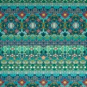 Vázy s čínskými vzory, lemy dekoračních obkladů a ozdobné mřížky inspirovaly tento bohatě vzorovaný horizontální design. Tištěno na hladkém sametu ze směsi bavlny a viskózy.