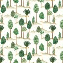 A charming depiction of stylised Indian trees. The colourways encompass various shades of green with golden accents, capturing a natural ambience. Printed on linen.