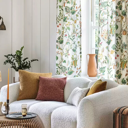 An imaginative trailing design of passion fruit flowers, seed pods and decorative gourds.