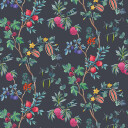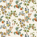 A medley of fruits; pomegranates, figs, redcurrants, plums, breadfruits, melons and sweet-pea pods are arranged in a colourful trailing design.