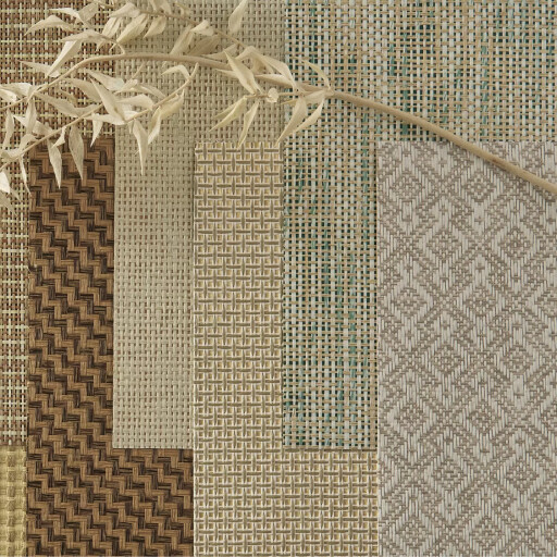 A modern reinterpretation of the ancient art of paper weaving, bonded to an easy-to-hang non-woven backing. The designs are presented in a colour palette, encompassing natural tones like walnut, camel, and bamboo, as well as livelier options such as peacock and gold. Usage and care: gentle vacuum with a soft brush. Immediately remove liquids using a dry white cloth.