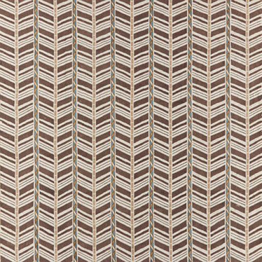 Barevné diagonální pruhy jsou ručně tištěny na lněné tkanině a v kombinaci s kaskádovitou výšivkou ve tvaru stuhy vytvářejí chevronový vzor.