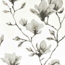 Extra široká tapeta s malovaným vzorem pnoucích magnolií. Metalické detaily dodávají tomuto designu jemný třpyt. Dostupné ve dvou decentních barevnostech.