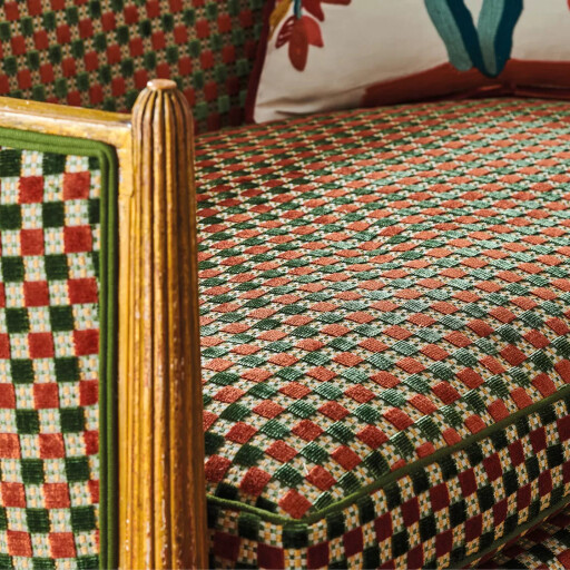 A striking velvet chequerboard with a luxurious pile and multi-coloured mosaic detail.